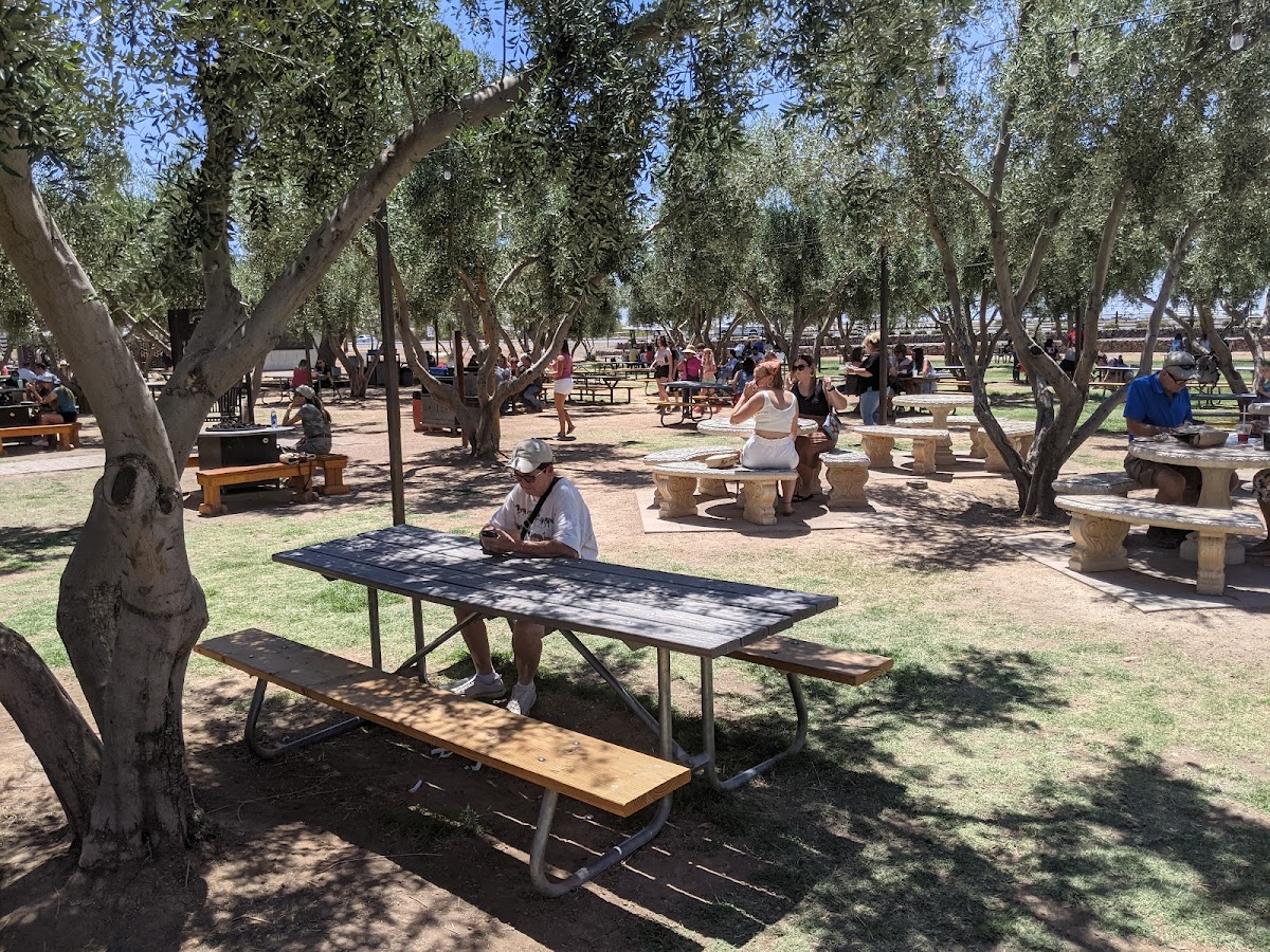 Where olives become liquid gold. I have never been to an olive farm nor have I seen how olives are milled. This was my first. We came to grab a bite at their eatery and ended up exploring a bit of the place. Queen Creek Olive Mill offers an Olive Oil 101 tour. You can purchase tour tickets at the counter to explore the mill. That day, there was a tour group learning about olive oil production, which seemed very informative. The venue has outdoor event spaces perfect for gatherings. It's so lushly green that you might wonder if you're really in the desert. One thing that caught my attention was the Old Stone Mill displayed in their garden. It's great that they have preserved it and put it on display. They also sell bundled olive wood. Their outdoor area has a bocce court (honestly, I don't know how to play it). If you haven't visited yet, it's worth checking out.